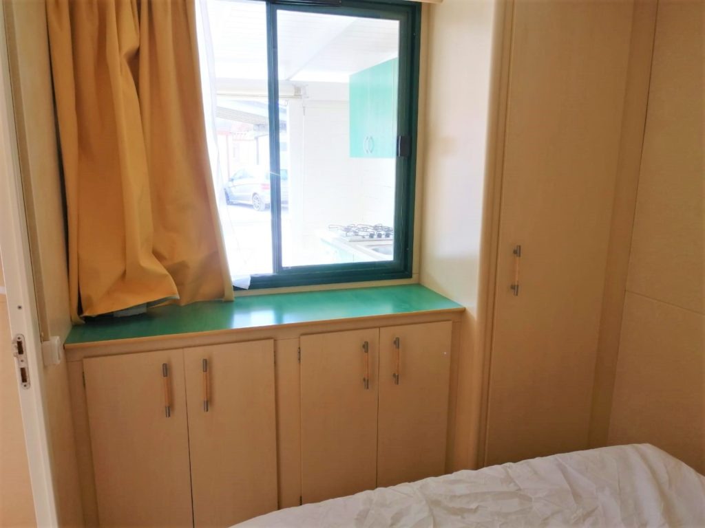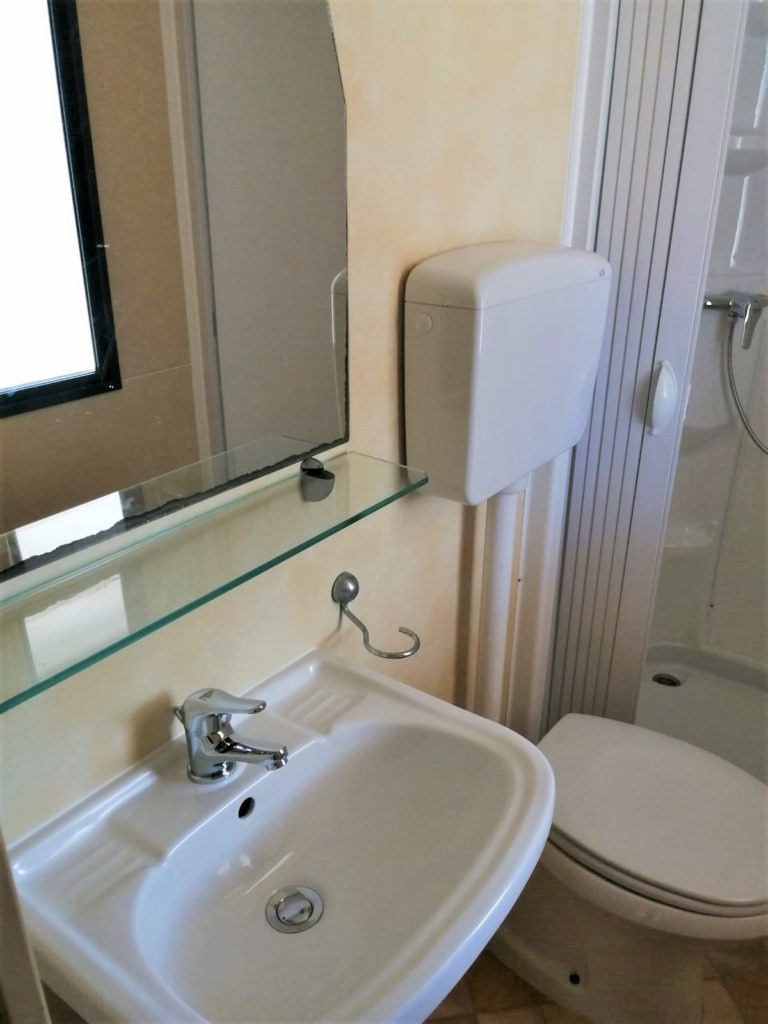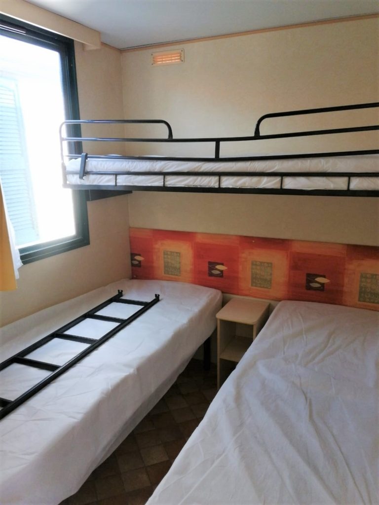 Internamente, é composto por uma sala de estar com zona de refeições, um quarto de casal e um pequeno quarto com 3 camas (uma das quais é uma cama de casal). A casa de banho é completa com vaso sanitário, pia e chuveiro.